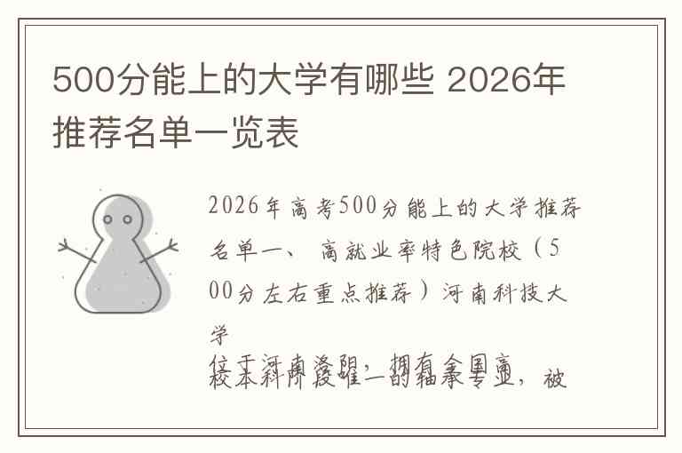 2026年高考500分能上的大学推荐名单
