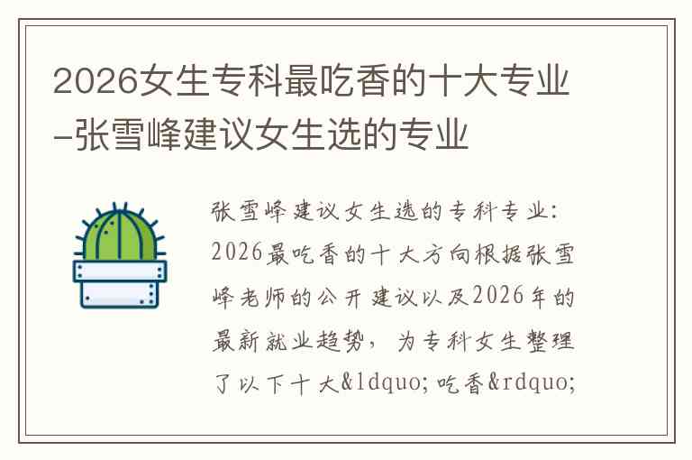张雪峰建议女生选的专科专业:2026最吃香的十大方向