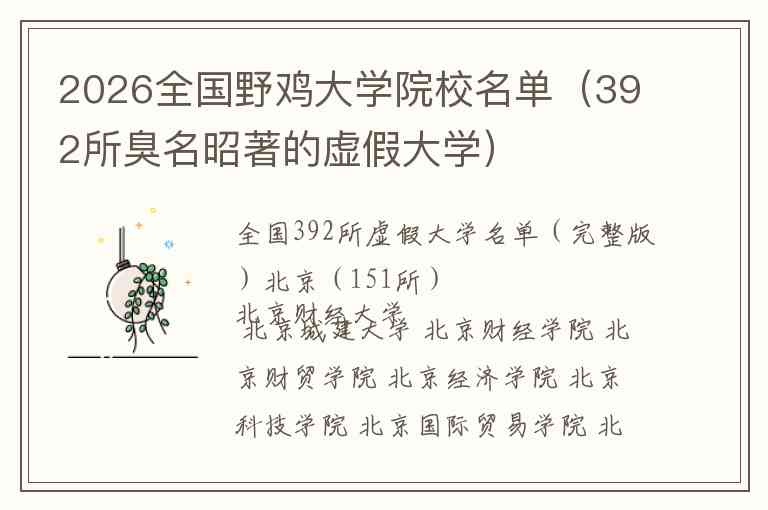 注:以上名单为历年曝光的虚假大学汇总。正规高校名单请以教育部官方网站公布为准。考生填报志愿时,务必核对官方发布的招生计划及学校代码,谨防受骗。