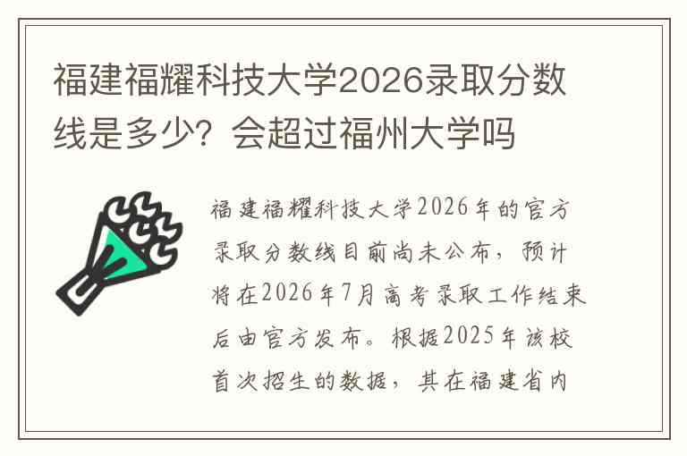 福建福耀科技大学2026年的官方录取分数线目前尚未公布,预计将在2026年7月高考录取工作结束后由官方发布。