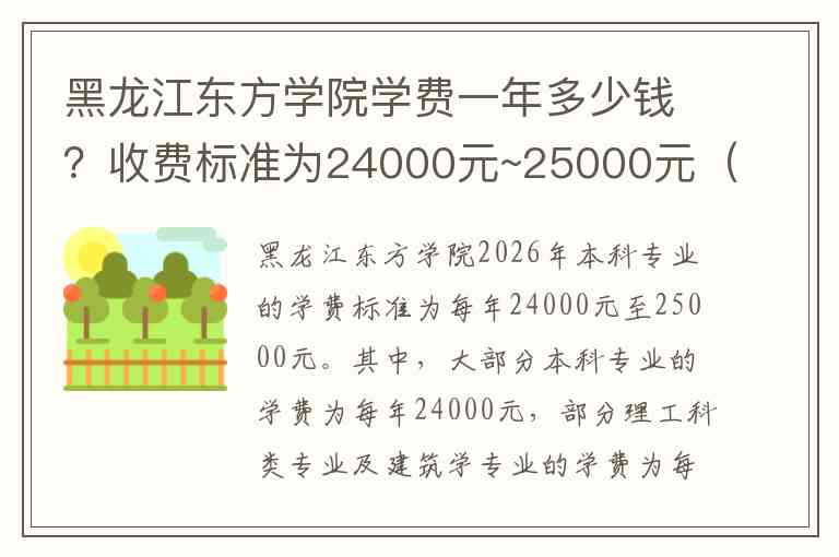 黑龙江东方学院2026年本科专业的学费标准为每年24000元至25000元。