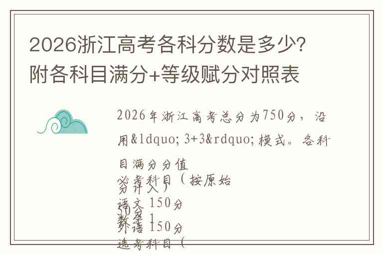 2026年浙江高考总分为750分,沿用“3+3”模式。