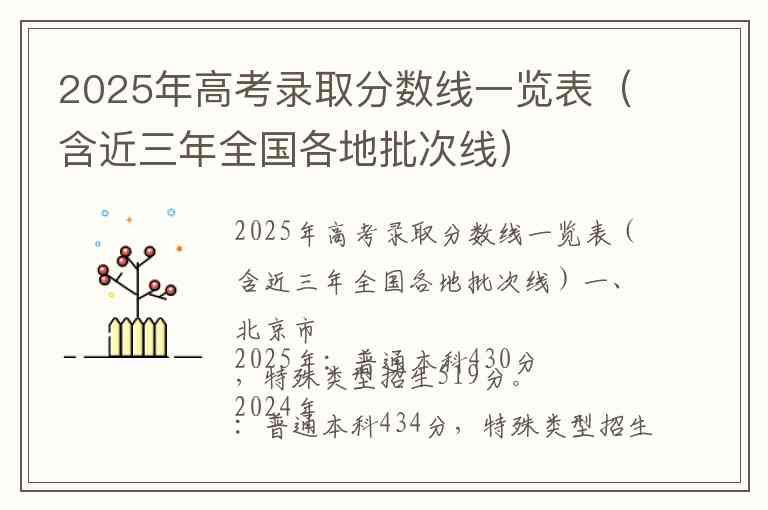 2025年高考录取分数线一览表(含近三年全国各地批次线)