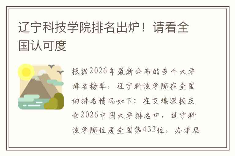 根据2026年最新公布的多个大学排名榜单,辽宁科技学院在全国的排名情况如下: