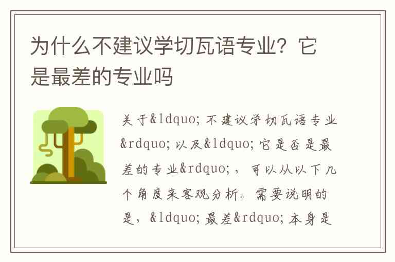 关于“不建议学切瓦语专业”以及“它是否是最差的专业”,可以从以下几个角度来客观分析。需要说明的是,“最差”本身是一个主观且缺乏统一标准的标签,任何专业的价值都不能用简单的好坏来评判,但切瓦语专业确实存在一些现实中需要慎重考虑的因素。