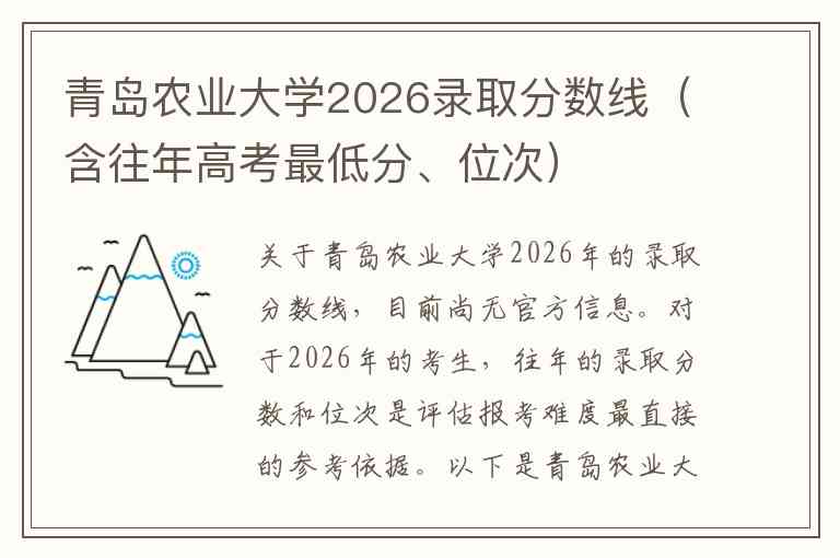 关于青岛农业大学2026年的录取分数线,目前尚无官方信息。对于2026年的考生,往年的录取分数和位次是评估报考难度最直接的参考依据。以下是青岛农业大学2025年和2024年在山东省内及部分省份的录取数据汇总。