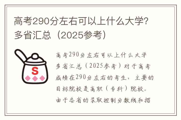 高考290分左右可以上什么大学 多省汇总(2025参考)