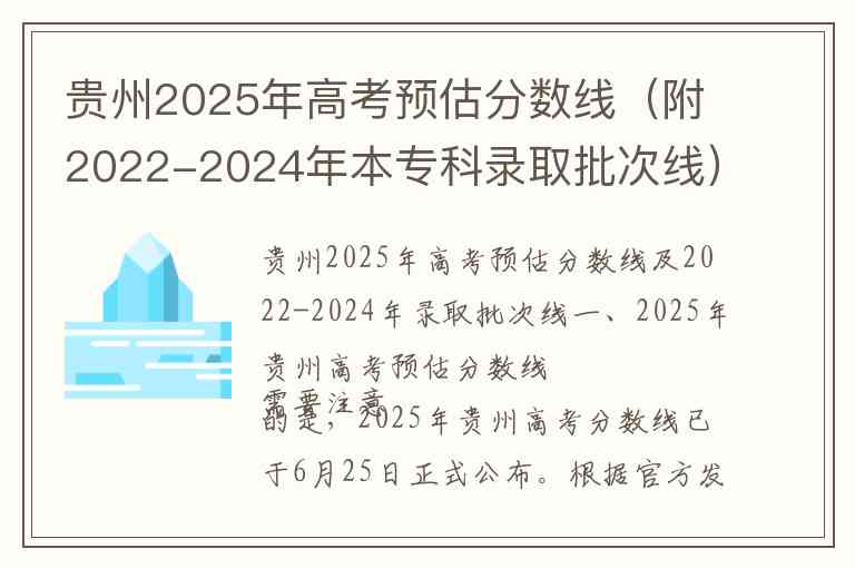 贵州2025年高考预估分数线及2022-2024年录取批次线