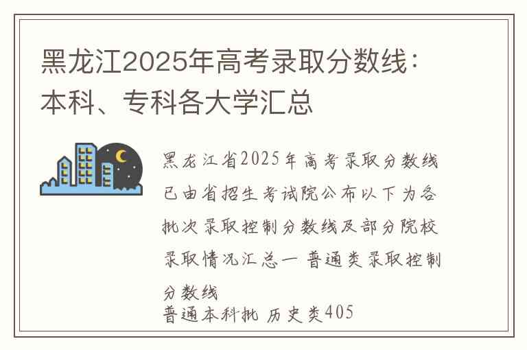 黑龙江省2025年高考录取分数线已由省招生考试院公布以下为各批次录取控制分数线及部分院校录取情况汇总