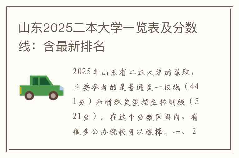 2025年山东省二本大学的录取,主要参考的是普通类一段线(441分)和特殊类型招生控制线(521分)。在这个分数区间内,有很多公办院校可以选择。