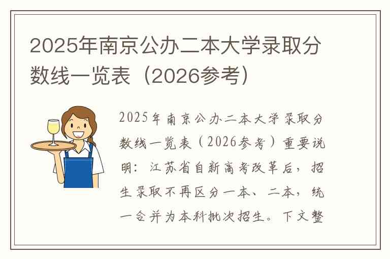 2025年南京公办二本大学录取分数线一览表(2026参考)