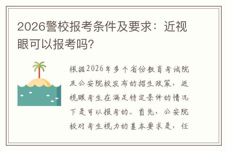 根据2026年多个省份教育考试院及公安院校发布的招生政策,近视眼考生在满足特定条件的情况下是可以报考的。