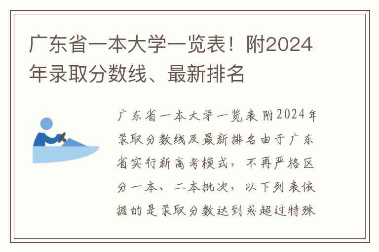 由于广东省实行新高考模式,不再严格区分一本、二本批次,以下列表依据的是录取分数达到或超过特殊类型招生控制线(可视为传统一本线)的本科院校。2024年广东省物理类特殊类型招生控制线为532分,历史类为539分。