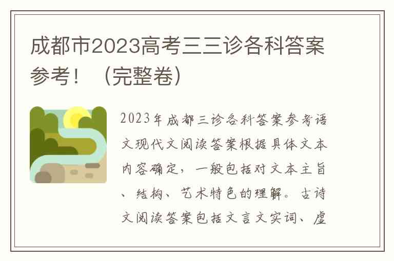 2023年成都三诊各科答案参考