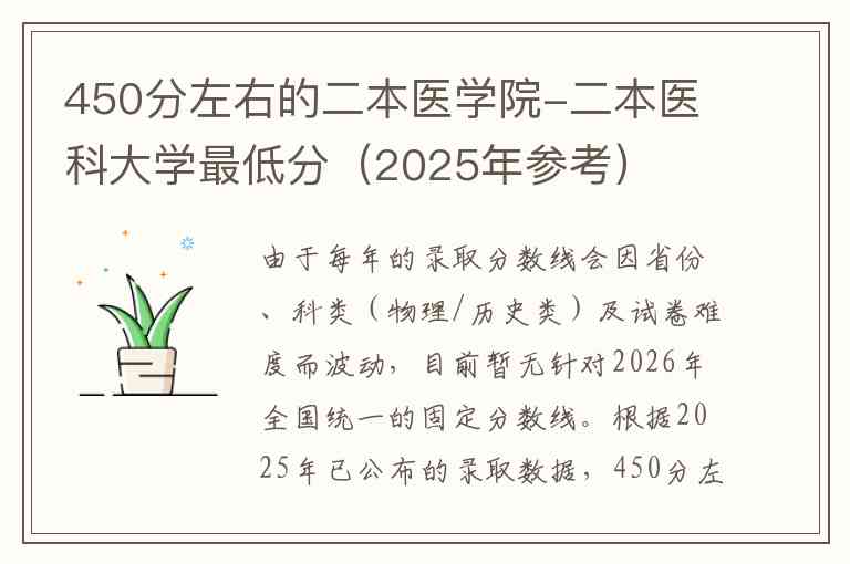 由于每年的录取分数线会因省份、科类(物理/历史类)及试卷难度而波动,目前暂无针对2026年全国统一的固定分数线。根据2025年已公布的录取数据,450分左右在多数省份属于二本医学院校的中分段,以下整理了部分在该分数段附近(约430-470分)的院校及录取情况,供你参考。