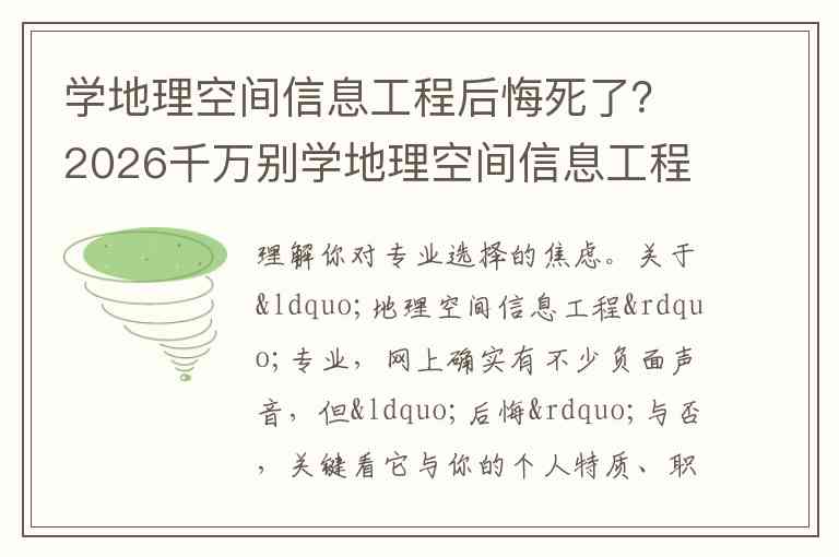 理解你对专业选择的焦虑。关于“地理空间信息工程”专业,网上确实有不少负面声音,但“后悔”与否,关键看它与你的个人特质、职业预期的匹配度。以下从几个方面帮你客观分析,供你参考。