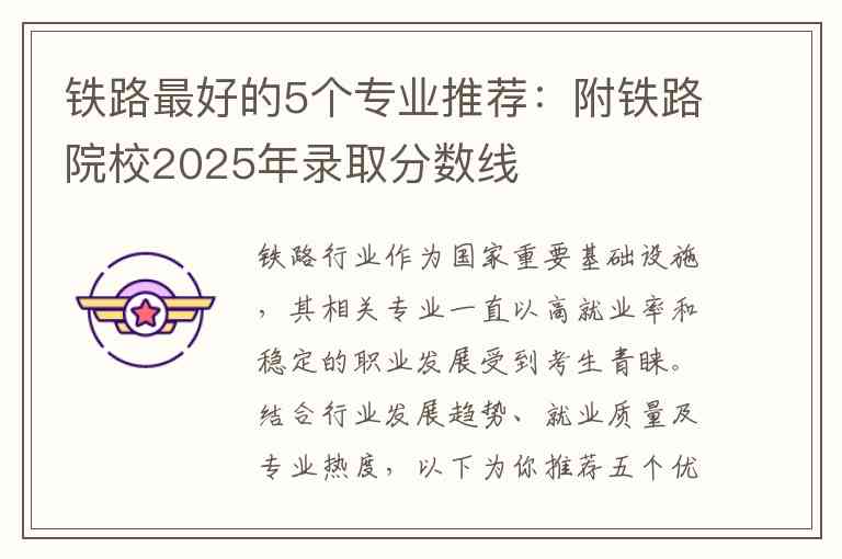 铁路行业作为国家重要基础设施,其相关专业一直以高就业率和稳定的职业发展受到考生青睐。结合行业发展趋势、就业质量及专业热度,以下为你推荐五个优势专业,并整理了部分铁路院校2025年的录取分数线供参考。