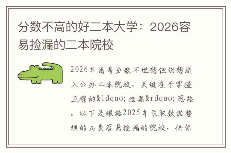 2026年高考分数不理想但仍想进入公办二本院校,关键在于掌握正确的“捡漏”思路。以下是根据2025年录取数据整理的几类容易捡漏的院校,供你参考。