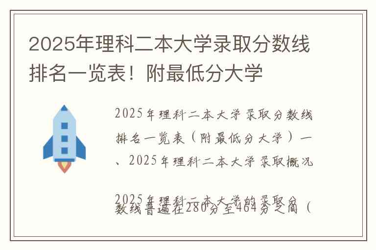 2025年理科二本大学录取分数线排名一览表(附最低分大学)