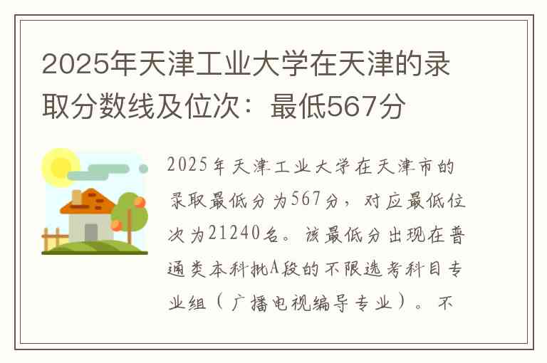 2025年天津工业大学在天津市的录取最低分为567分,对应最低位次为21240名。