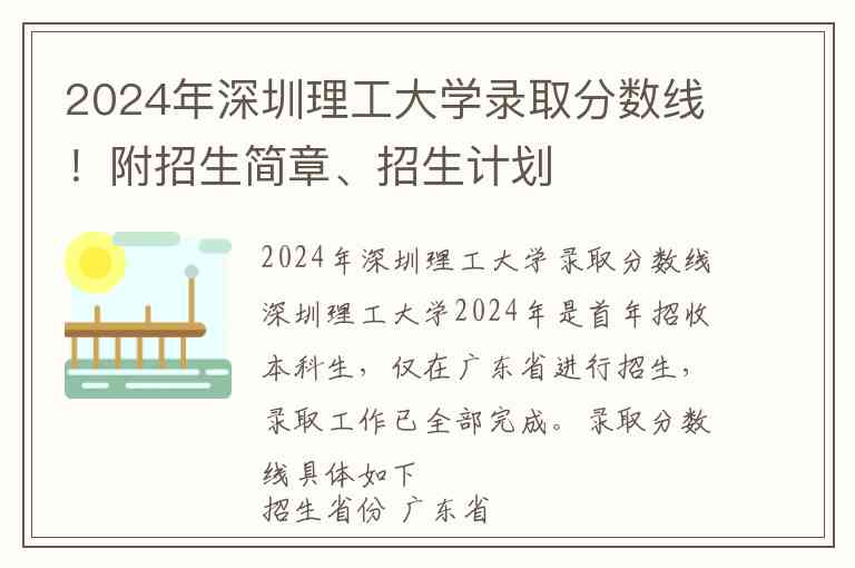 深圳理工大学2024年是首年招收本科生,仅在广东省进行招生,录取工作已全部完成。