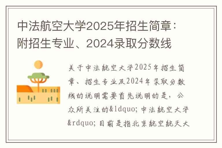 关于中法航空大学2025年招生简章、招生专业及2024年录取分数线的说明