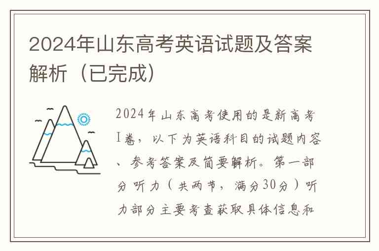 2024年山东高考使用的是新高考I卷,以下为英语科目的试题内容、参考答案及简要解析。