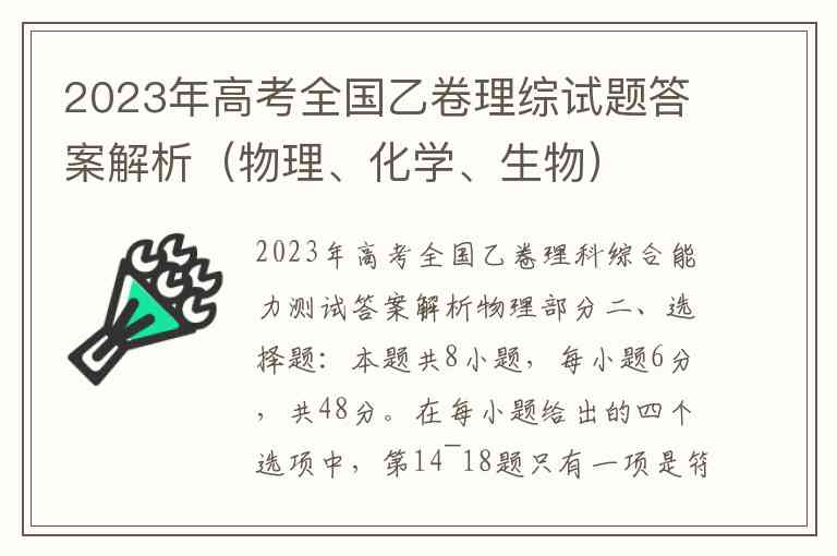 2023年高考全国乙卷理科综合能力测试答案解析