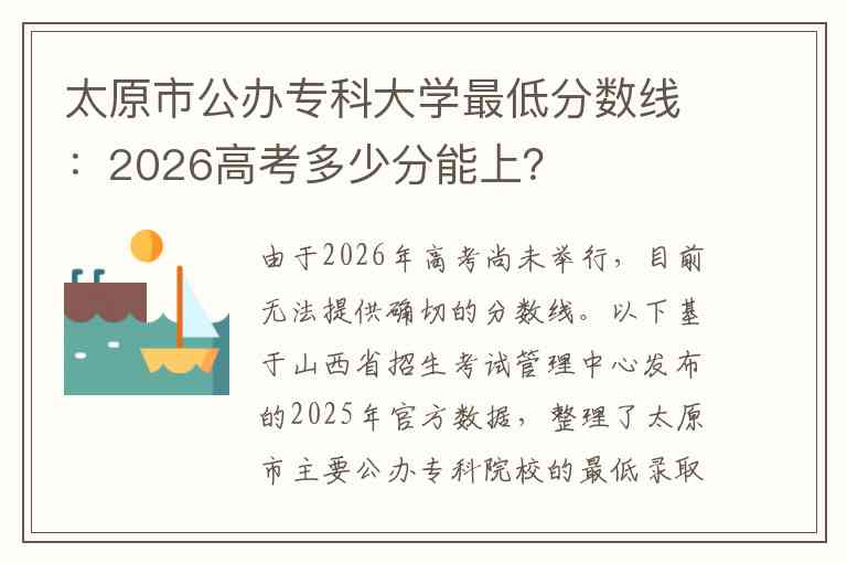 由于2026年高考尚未举行,目前无法提供确切的分数线。以下基于山西省招生考试管理中心发布的2025年官方数据,整理了太原市主要公办专科院校的最低录取分数线,供您作为重要参考。
