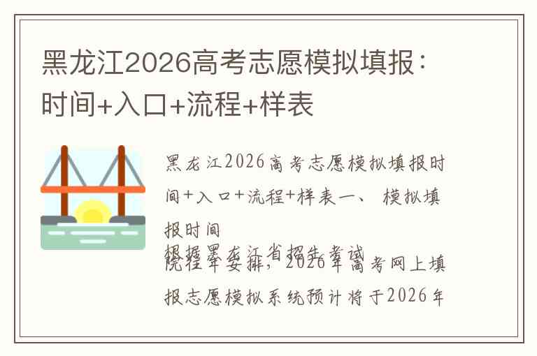 黑龙江2026高考志愿模拟填报时间+入口+流程+样表