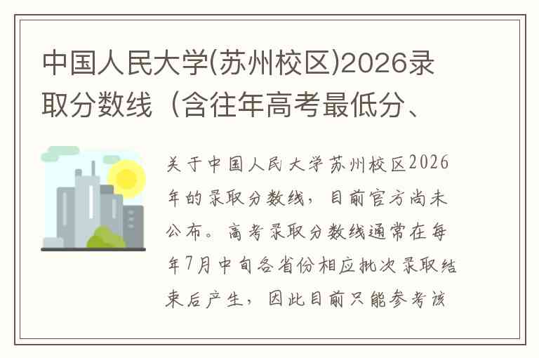 关于中国人民大学苏州校区2026年的录取分数线,目前官方尚未公布。高考录取分数线通常在每年7月中旬各省份相应批次录取结束后产生,因此目前只能参考该校2024年和2025年已公布的录取数据,对2026年的分数进行大致预估。