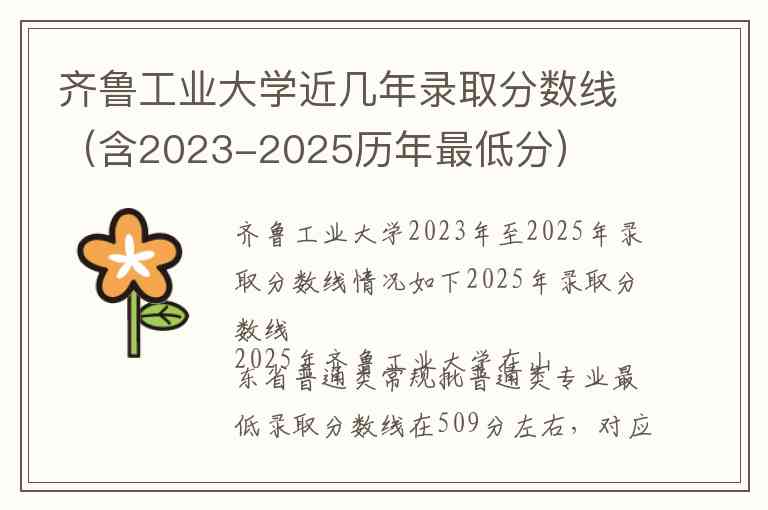 齐鲁工业大学2023年至2025年录取分数线情况如下