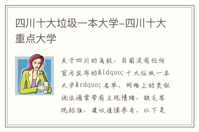 关于四川的高校,目前没有任何官方发布的“十大垃圾一本大学”名单。网络上的类似说法通常带有主观情绪,缺乏客观标准,建议谨慎参考。