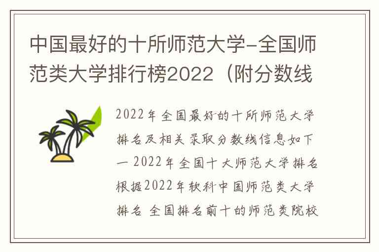 2022年全国最好的十所师范大学排名及相关录取分数线信息如下