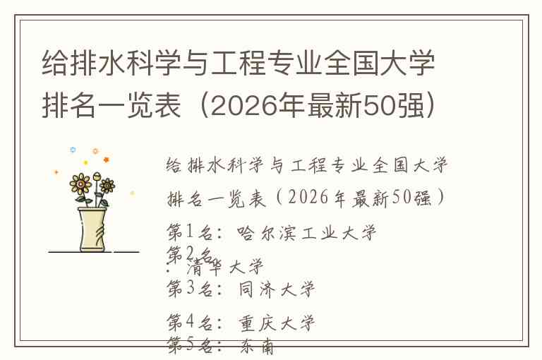 给排水科学与工程专业全国大学排名一览表(2026年最新50强)