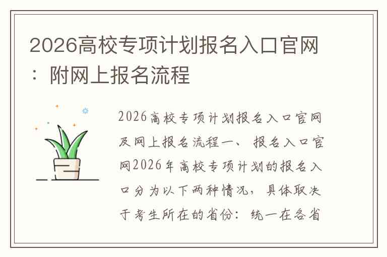 2026高校专项计划报名入口官网及网上报名流程