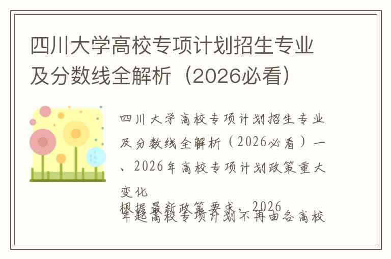 四川大学高校专项计划招生专业及分数线全解析(2026必看)