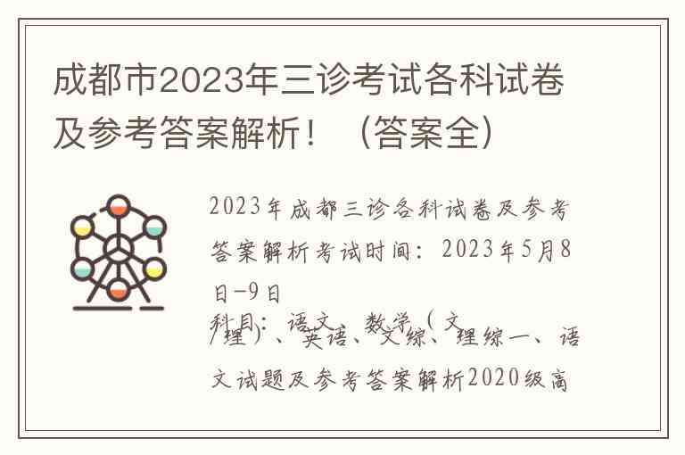 2023年成都三诊各科试卷及参考答案解析