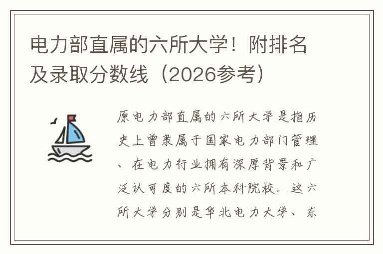 原电力部直属的六所大学是指历史上曾隶属于国家电力部门管理、在电力行业拥有深厚背景和广泛认可度的六所本科院校。这六所大学分别是华北电力大学、东北电力大学、上海电力大学、三峡大学、长沙理工大学和南京工程学院。