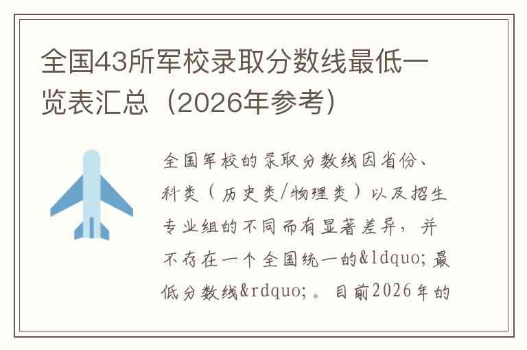 全国军校的录取分数线因省份、科类(历史类/物理类)以及招生专业组的不同而有显著差异,并不存在一个全国统一的“最低分数线”。目前2026年的录取工作尚未开始,以下为2025年部分省份在本科提前批的录取数据,供你作为2026年志愿填报的重要参考。