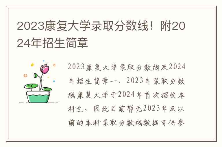 康复大学于2024年首次招收本科生,因此目前暂无2023年及以前的本科录取分数线数据可供参考。