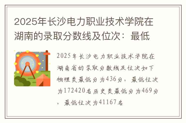 2025年长沙电力职业技术学院在湖南的录取分数线及位次:最低436分