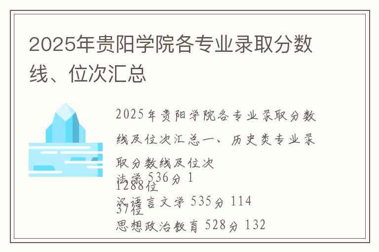 2025年贵阳学院各专业录取分数线及位次汇总