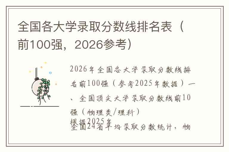 2026年全国各大学录取分数线排名前100强(参考2025年数据)