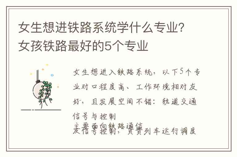 女生想进入铁路系统,以下5个专业对口程度高、工作环境相对友好,且发展空间不错: