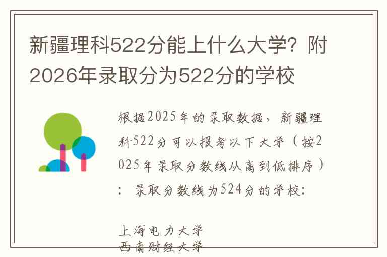 以上数据主要参考2025年新疆高考理科本科一批次录取情况,522分已超过2025年新疆理科一本线421分,考生可重点考虑上述一本院校。
