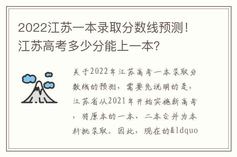 关于2022年江苏高考一本录取分数线的预测,需要先说明的是,江苏省从2021年开始实施新高考,将原本的一本、二本合并为本科批录取。因此,现在的“特殊类型招生控制线”通常被视作以往的“一本线”参考标准。