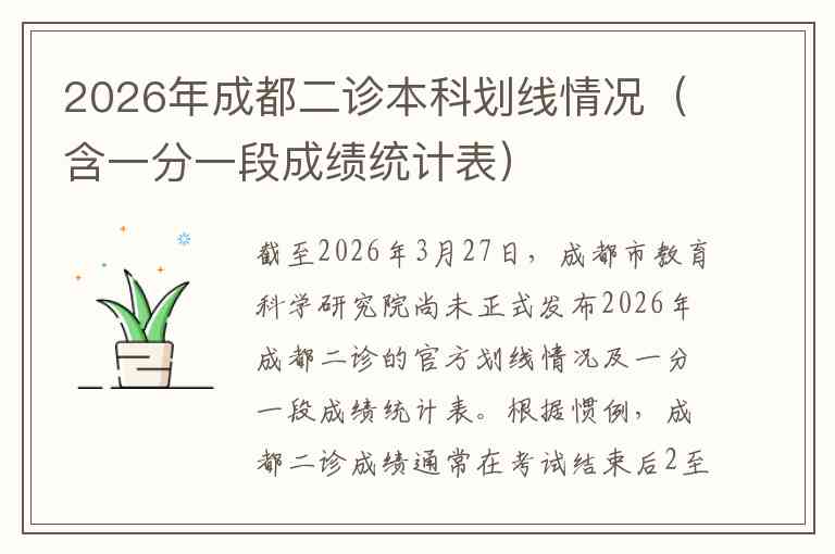 截至2026年3月27日,成都市教育科学研究院尚未正式发布2026年成都二诊的官方划线情况及一分一段成绩统计表。