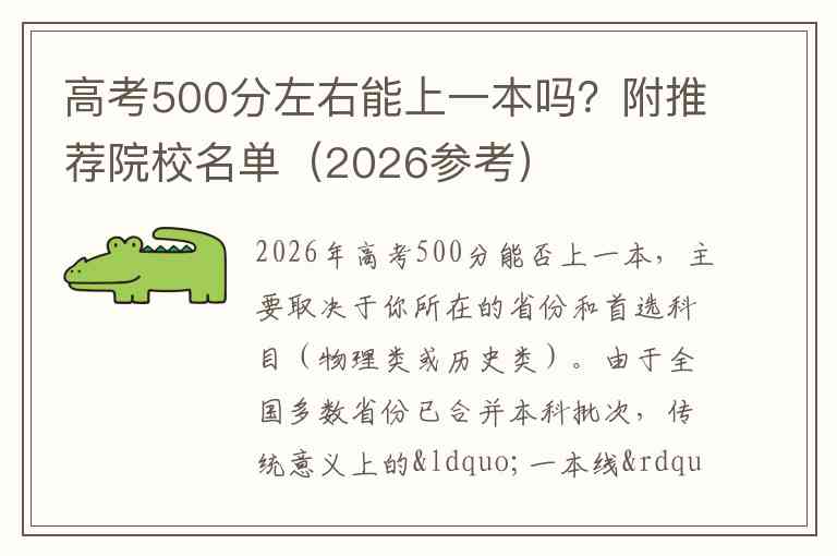 2026年高考500分能否上一本,主要取决于你所在的省份和首选科目(物理类或历史类)。由于全国多数省份已合并本科批次,传统意义上的“一本线”通常参考“特殊类型招生控制线”(简称特控线)。