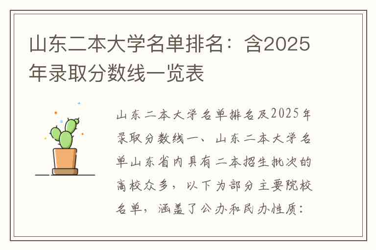 山东二本大学名单排名及2025年录取分数线